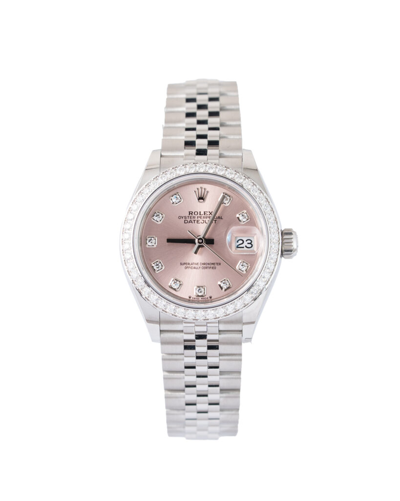 brand: Rolex Reference: 279384RBR Model: Datejust case MATERIAL: Steel strap: Bracelet case Size (MM): 28mm Dial colour: Pink Bezel: Diamond Year: 03/2026 Condition: Unworn Box papers : Paperwork/box