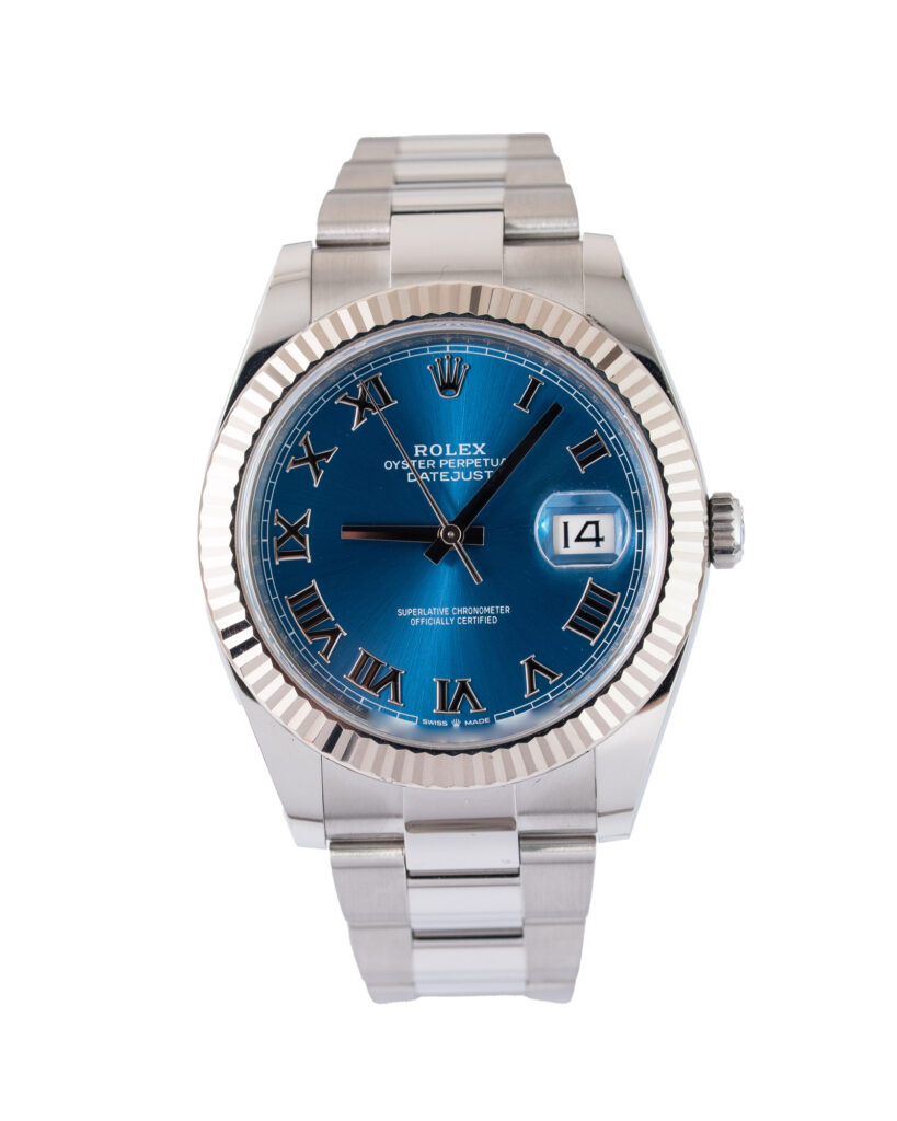 brand: Rolex Reference: 126334 Model: Datejust case MATERIAL: Steel strap: Bracelet case Size (MM): 41mm Dial colour: Blue Bezel: White Gold Condition: Good Box papers : Paperwork/box