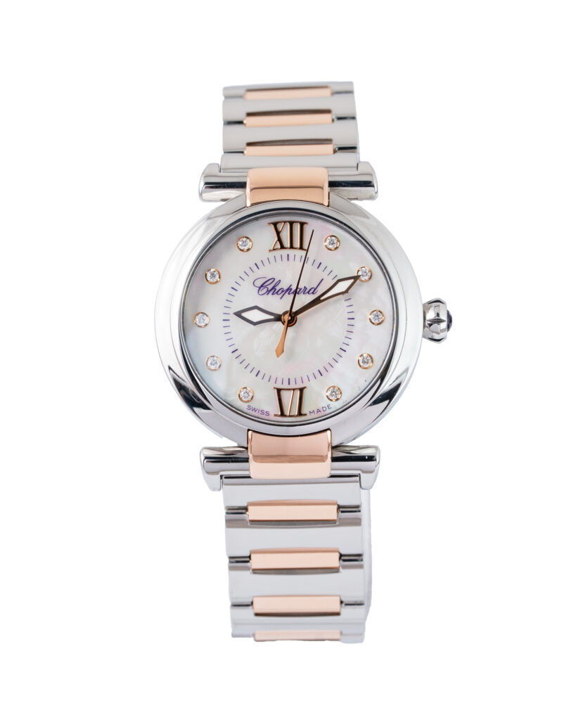 brand: Chopard Reference: 388563-6013 Model: Imperiale case MATERIAL: Steel & Rose Gold strap: Bracelet case Size (MM): 29mm Dial colour: Mother Of Pearl Bezel: Steel Year: 11/2021 Condition: Excellent Box papers : Paperwork/box