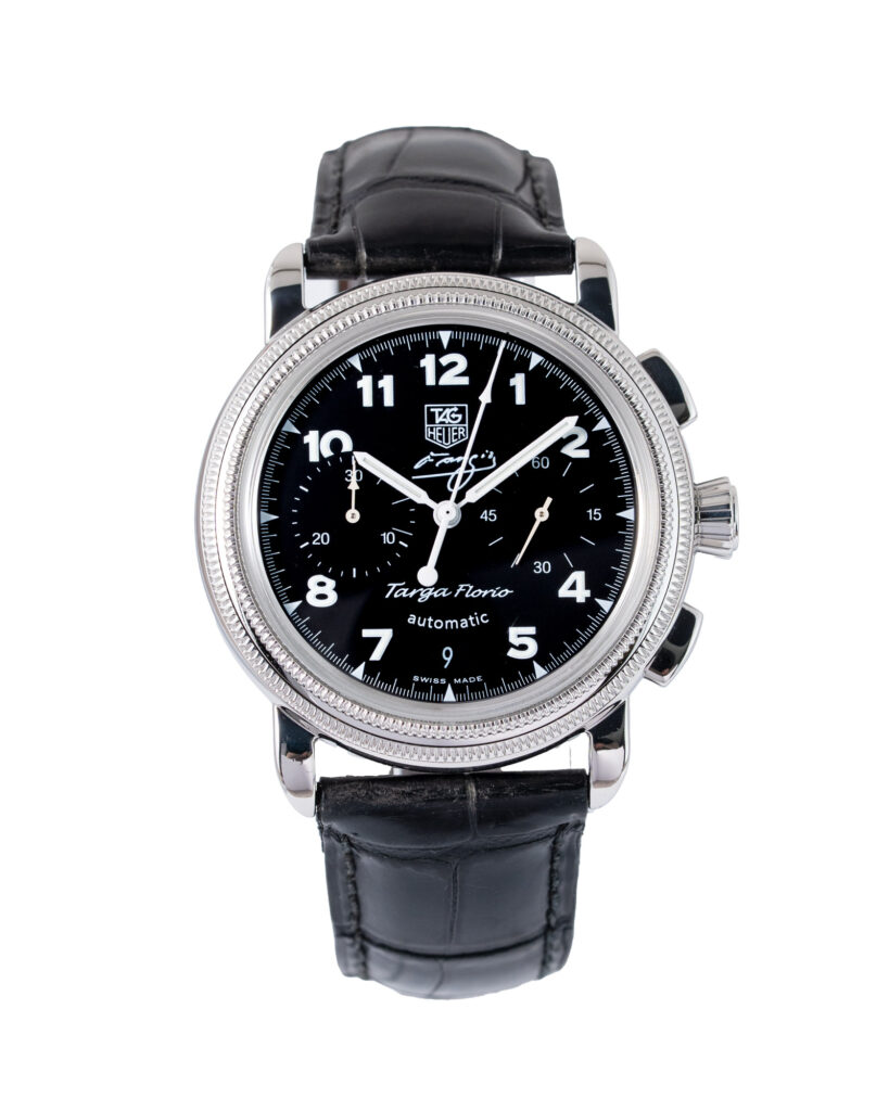 brand: Tag Heuer Reference: CX2113 Model: Targa Florio case MATERIAL: Steel strap: Leather case Size (MM): 40mm Dial colour: Black Bezel: Steel Year: 07/2005 Condition: Excellent Box papers : Paperwork/box