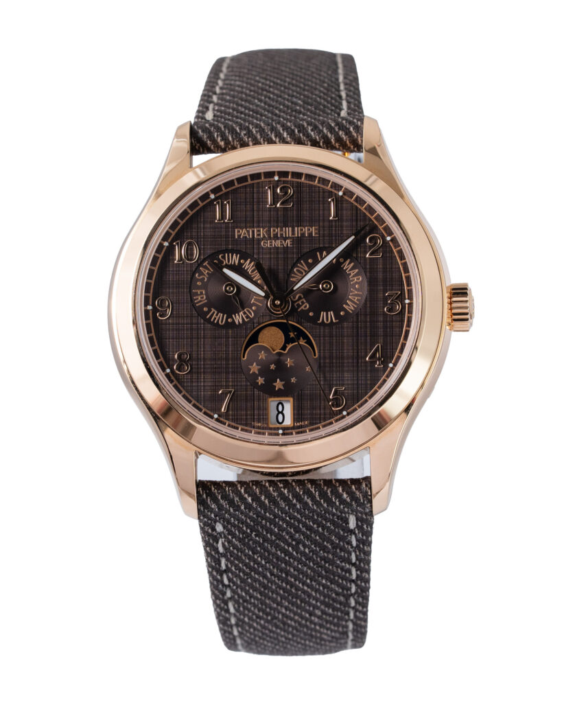brand: Patek Philippe Reference: 4946R-001 Model: Annual Calendar case MATERIAL: Rose Gold strap: Fabric case Size (MM): 38mm Dial colour: Brown Bezel: Rose Gold Condition: Unworn Box papers : Paperwork/box