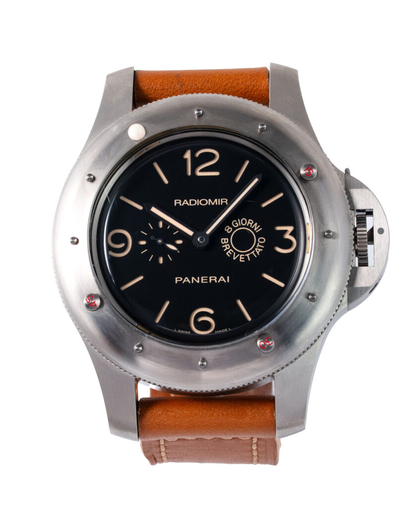 brand: Panerai Reference: PAM00341 Model: Egiziano Radiomir case MATERIAL: Titanium strap: Leather case Size (MM): 60mm Dial colour: Black Bezel: Titanium Condition: Excellent Box papers : Paperwork/box