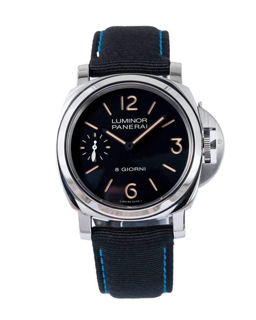 brand: Panerai Reference: PAM00915 Model: Luminor 8 Giorni case MATERIAL: Steel strap: Leather case Size (MM): 44mm Dial colour: Black Bezel: Steel Year: 01/2024 Condition: Excellent Box papers : Paperwork/box
