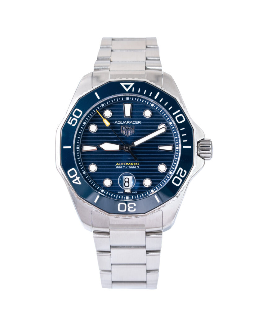 brand: Tag Heuer Reference: WBP201B.BA0632 Model: Aquaracer case MATERIAL: Steel strap: Bracelet case Size (MM): 43mm Dial colour: Blue Bezel: Ceramic Condition: Excellent Box papers : Paperwork/box