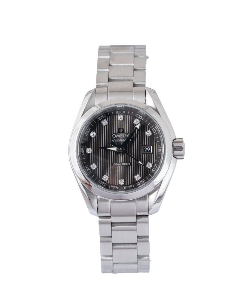 brand: Omega Reference: 231.10.30.60.56.001 Model: Seamaster Aqua Terra case MATERIAL: Steel strap: Bracelet case Size (MM): 30mm Dial colour: Black Bezel: Steel Year: 05/2013 Condition: Excellent Box papers : Paperwork/box