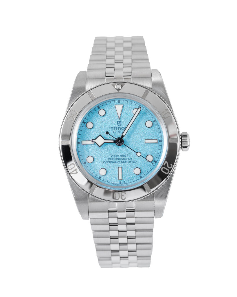 brand: Tudor Reference: 79000-0001 Model: Black Bay 54 case MATERIAL: Steel strap: Bracelet case Size (MM): 37mm Dial colour: Blue Bezel: Steel Year: 07/2025 Condition: Excellent Box papers : Paperwork/box