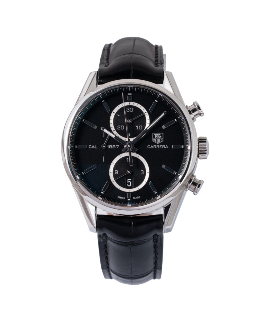 brand: Tag Heuer Reference: CAR2110.FC6266 Model: Carrera Calibre 1887 case MATERIAL: Steel strap: Leather case Size (MM): 41mm Dial colour: Black Bezel: Steel Year: 04/2015 Condition: Excellent Box papers : Paperwork/box