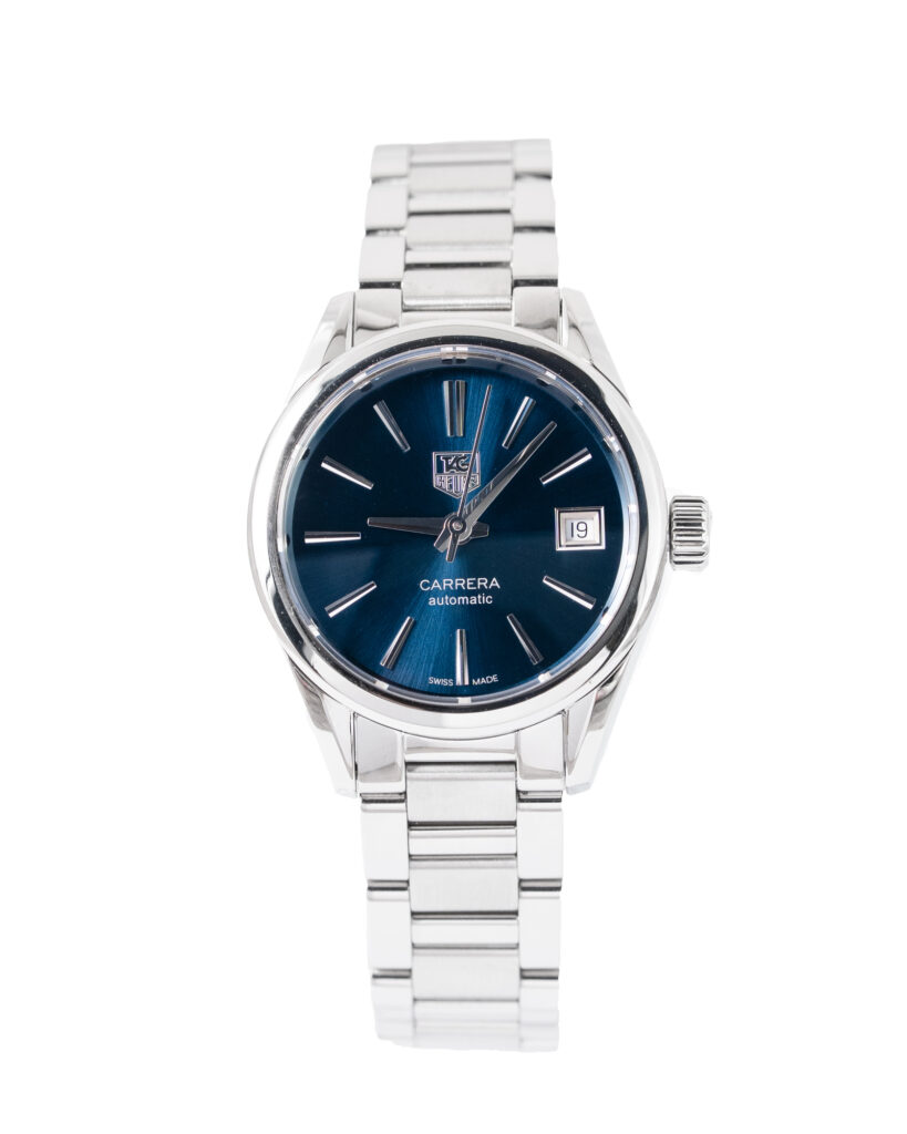 brand: Tag Heuer Reference: WAR2419 Model: Carrera Automatic case MATERIAL: Steel strap: Bracelet case Size (MM): 28mm Dial colour: Blue Bezel: Steel Year: 04/2021 Condition: Excellent Box papers : Paperwork/box