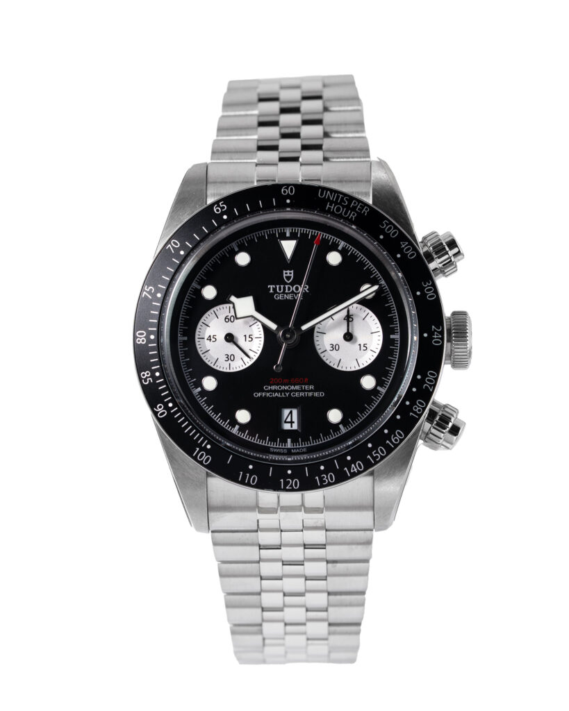brand: Tudor Reference: 79360N Model: Black Bay Chrono case MATERIAL: Steel strap: Bracelet case Size (MM): 41mm Dial colour: Black Bezel: Steel Year: 08/2025 Condition: Excellent Box papers : Paperwork/box