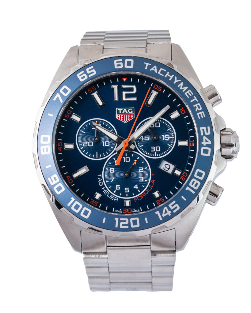 brand: Tag Heuer Reference: CAZ1014 Model: Formula 1 case MATERIAL: Steel strap: Bracelet case Size (MM): 43mm Dial colour: Blue Bezel: Steel Condition: Excellent Box papers : Box