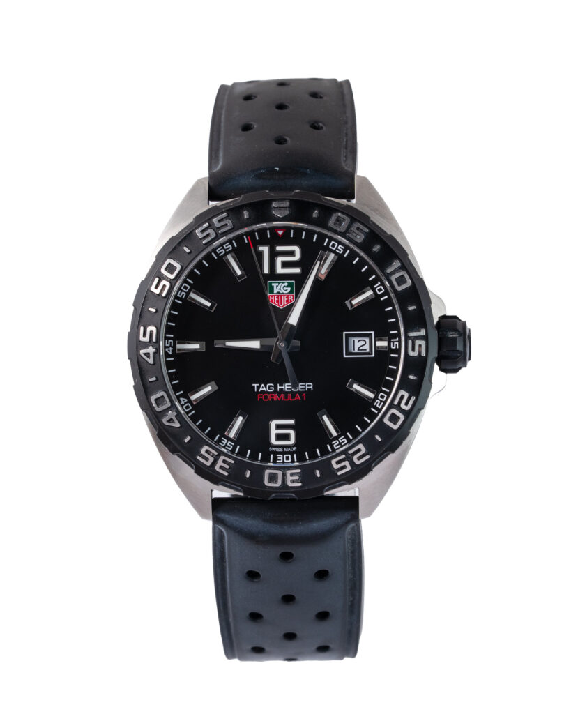 brand: Tag Heuer Reference: WAZ1110 Model: Formula 1 case MATERIAL: Steel strap: Bracelet case Size (MM): 41mm Dial colour: Black Bezel: Steel Year: 08/2024 Condition: Excellent Box papers : Paperwork/box