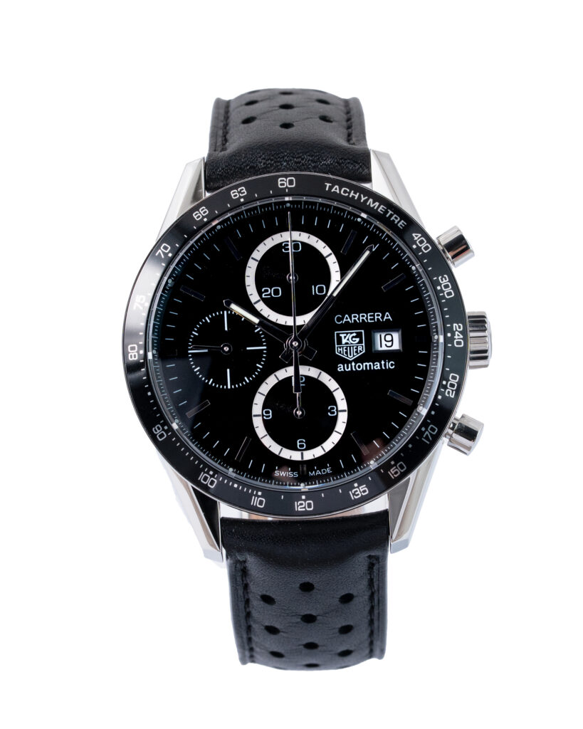 brand: Tag Heuer Reference: CV2010-2 Model: Carrera Calibre 16 case MATERIAL: Steel strap: Leather case Size (MM): 41mm Dial colour: Black Bezel: Steel Year: 06/2010 Condition: Excellent Box papers : Paperwork/box