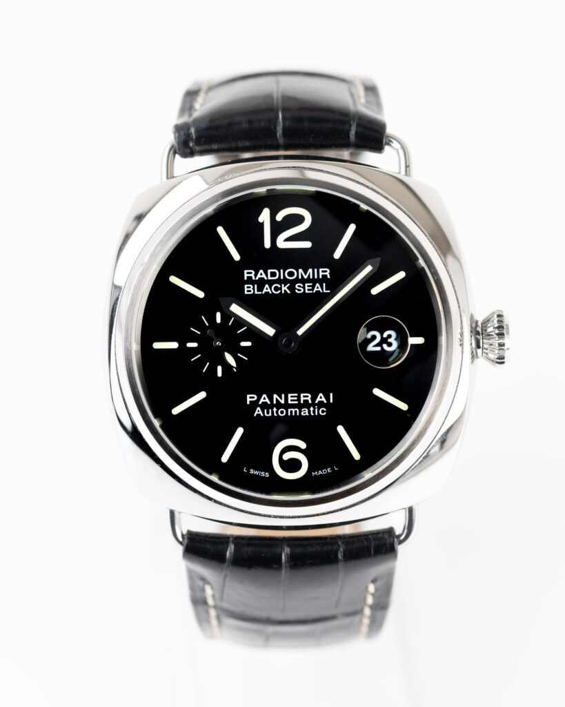 brand: Panerai Reference: PAM00287 Model: Radiomir Black Seal case MATERIAL: Steel strap: Leather case Size (MM): 45mm Dial colour: Black Bezel: Steel Year: 05/2008 Condition: Excellent Box papers : Paperwork/box