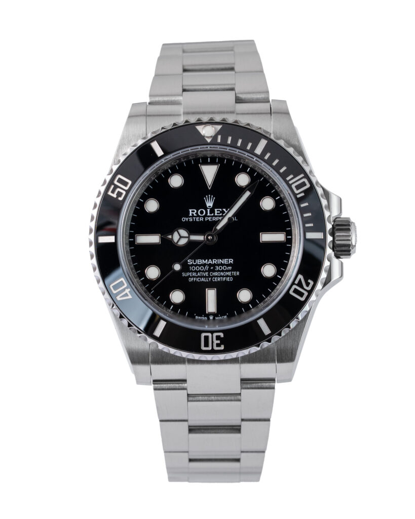 brand: Rolex Reference: 124060 Model: Submariner case MATERIAL: Steel strap: Bracelet case Size (MM): 41mm Dial colour: Black Bezel: Ceramic Year: 10/2021 Condition: Excellent Box papers : Paperwork/box