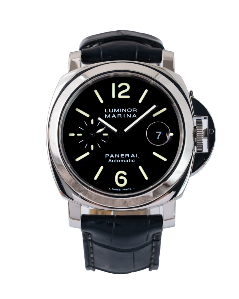 brand: Panerai Reference: OP6630 Model: Luminor Marina case MATERIAL: Steel strap: Leather case Size (MM): 44mm Dial colour: Black Bezel: Steel Year: 10/2005 Condition: Excellent Box papers : Paperwork/box