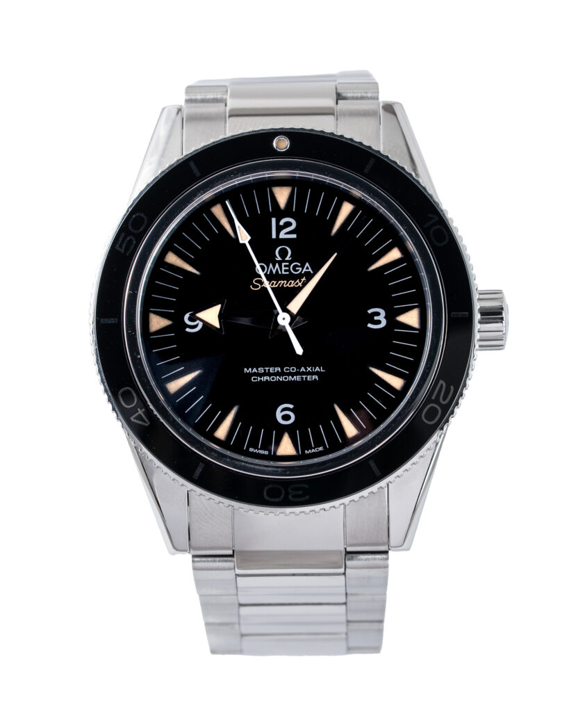 brand: Omega Reference: 233.30.41.21.01..001 Model: Seamaster case MATERIAL: Steel strap: Bracelet case Size (MM): 41mm Dial colour: Black Bezel: Ceramic Condition: Excellent Box papers : Paperwork/box