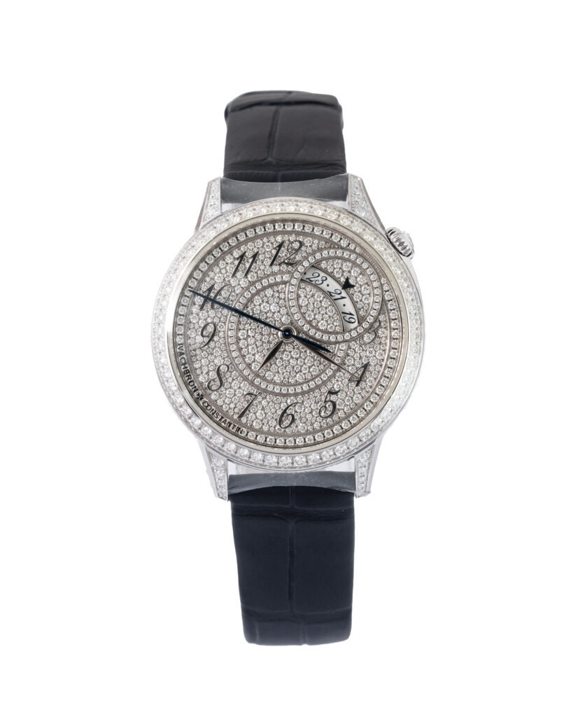 brand: Vacheron Constantin Reference: 4606F/000G-B649 Model: Égérie case MATERIAL: White Gold strap: Leather case Size (MM): 35mm Dial colour: Diamond Bezel: White Gold Year: 11/2021 Condition: Unworn Box papers : Paperwork/box