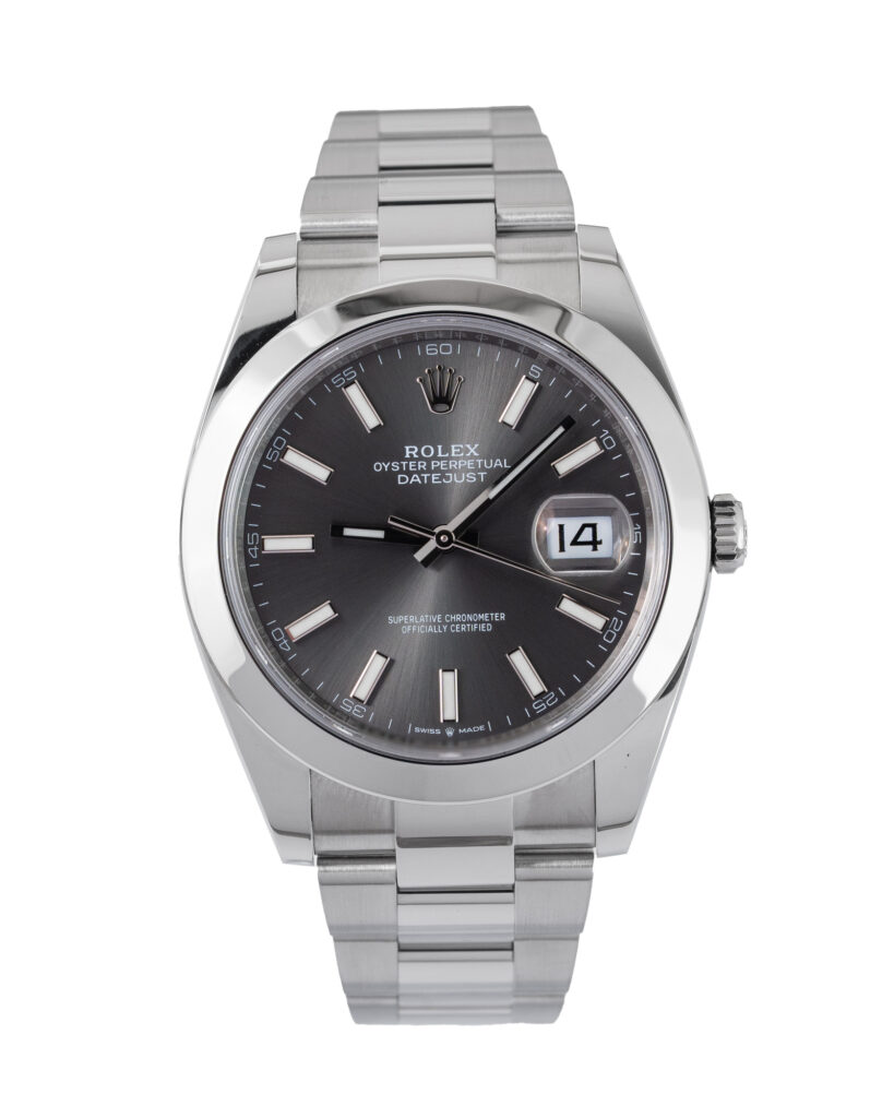 brand: Rolex Reference: 126300 Model: Datejust case MATERIAL: Steel strap: Bracelet case Size (MM): 41mm Dial colour: Grey Bezel: Steel Year: 11/2021 Condition: Excellent Box papers : Paperwork/box