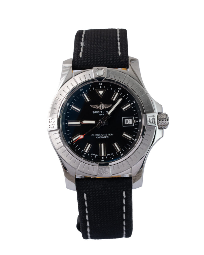 brand: Breitling Reference: A17318 Model: Avenger Automatic 43 case MATERIAL: Steel strap: Fabric case Size (MM): 43mm Dial colour: Black Bezel: Steel Year: 12/2021 Condition: Excellent Box papers : Paperwork/box