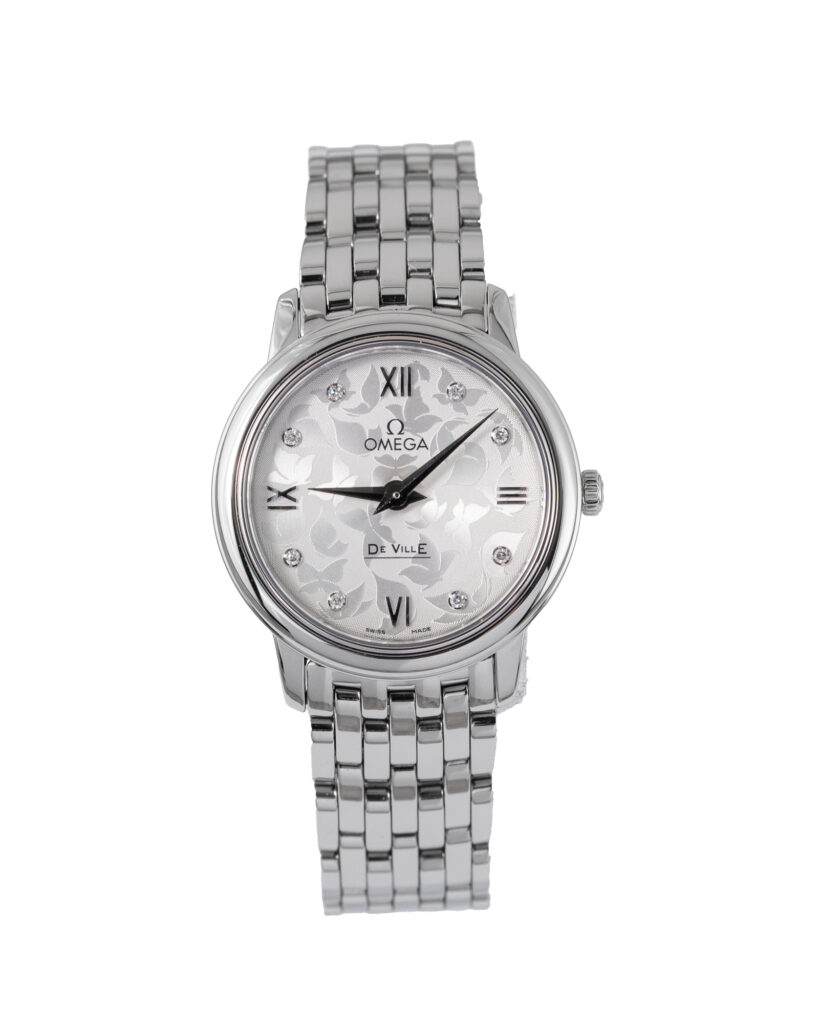 brand: Omega Reference: 424.10.27.60.52.001 Model: De Ville Prestige case MATERIAL: Steel strap: Bracelet case Size (MM): 27.4mm Dial colour: Silver Bezel: Steel Year: 02/2016 Condition: Excellent Box papers : Paperwork/box