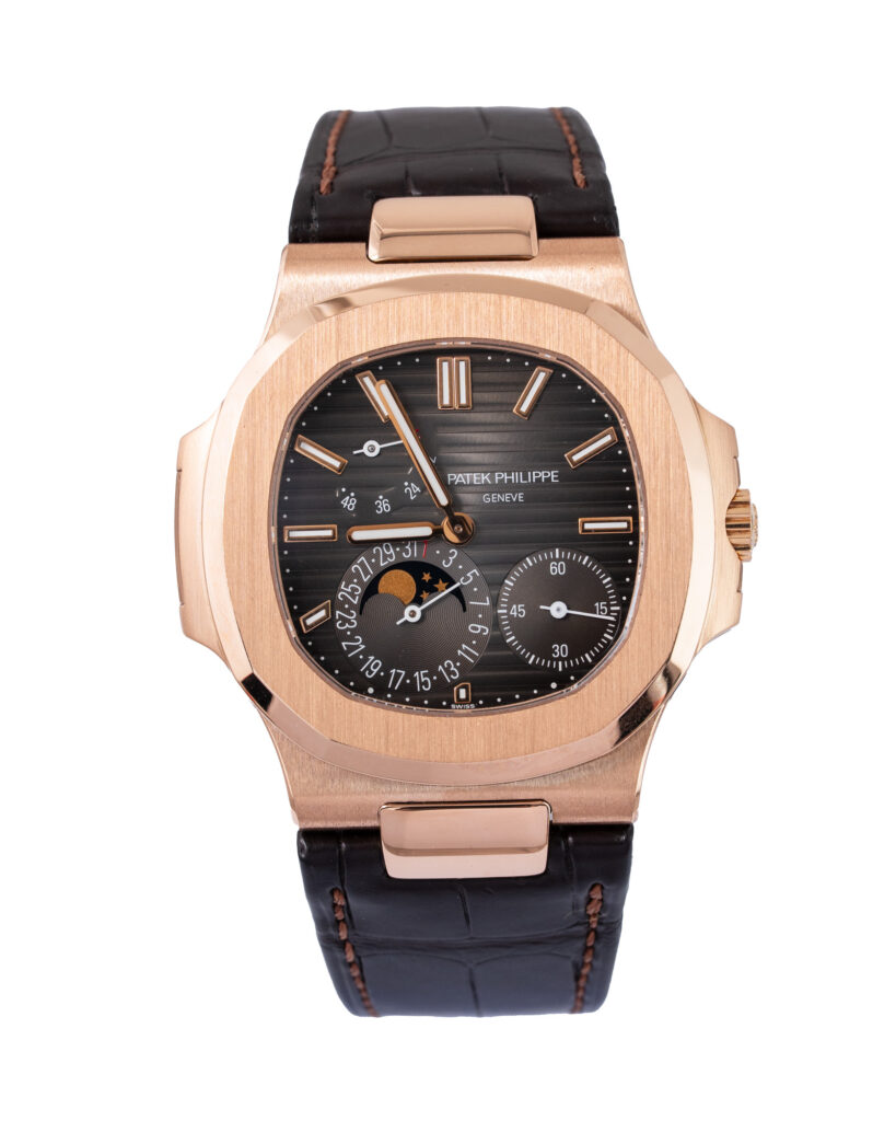 brand: Patek Philippe Reference: 5712R-001 Model: Nautilus case MATERIAL: Rose Gold strap: Leather case Size (MM): 40mm Dial colour: Brown Bezel: Rose Gold Year: 05/2019 Condition: Excellent Box papers : Paperwork/box