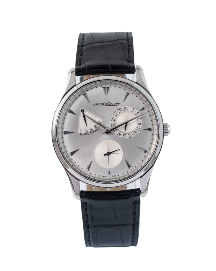 brand: Jaeger-Lecoultre Reference: JLQ1378420 Model: Master Ultra Thin Réserve De Marche case MATERIAL: Steel strap: Leather case Size (MM): 39mm Dial colour: Silver Bezel: Steel Year: 06/2018 Condition: Excellent Box papers : Paperwork/box