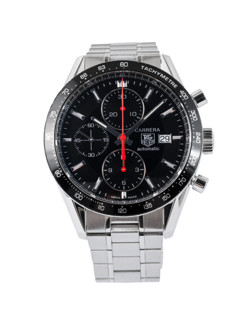 brand: Tag Heuer Reference: CV2014 Model: Carrera Calibre case MATERIAL: Steel strap: Bracelet case Size (MM): 41mm Dial colour: Black Bezel: Steel Year: 04/2011 Condition: Excellent Box papers : Paperwork/box