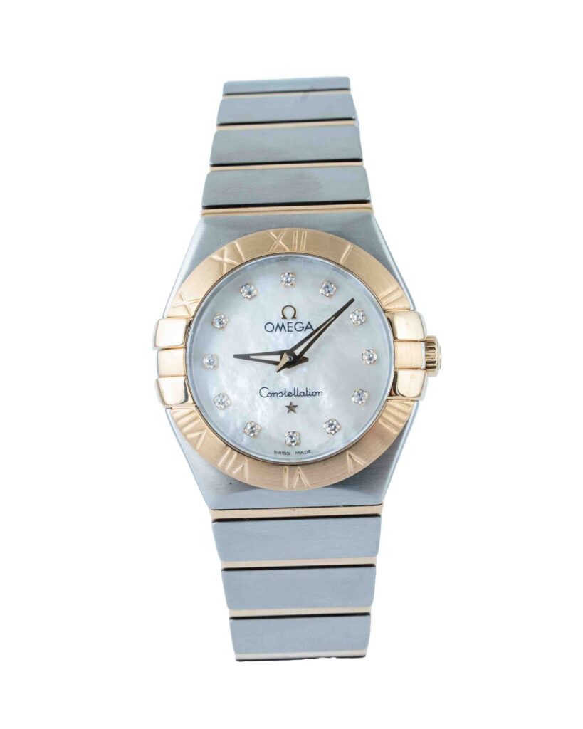 brand: Omega Reference: 123.20.27.60.55.002 Model: Constellation Quartz case MATERIAL: Steel & Yellow Gold strap: Bracelet case Size (MM): 27mm Dial colour: Mother Of Pearl Bezel: Yellow Gold Year: 09/2016 Condition: Excellent Box papers : Paperwork/box