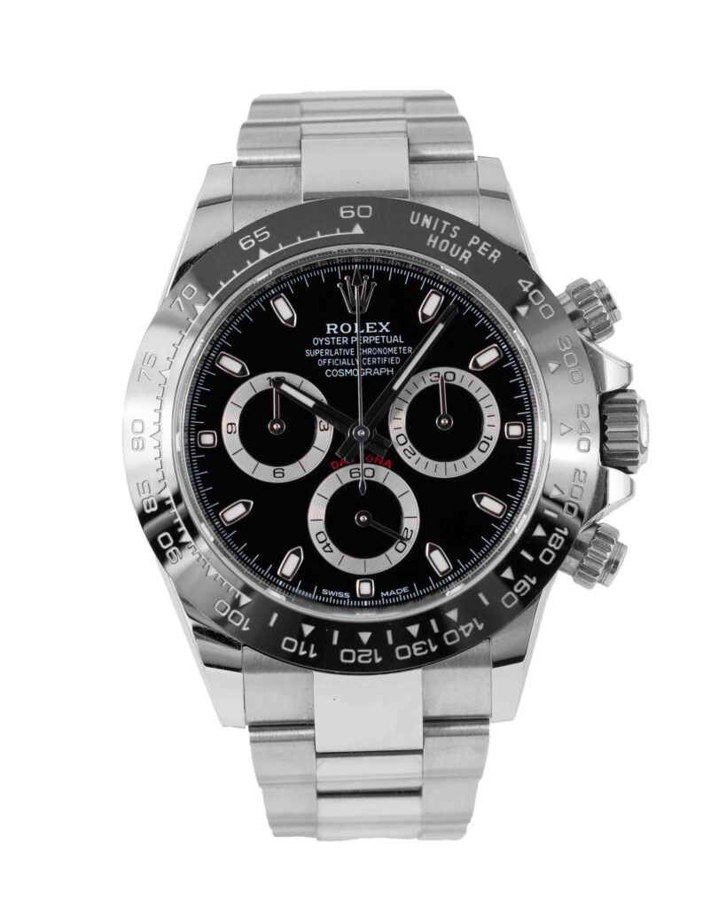 brand: Rolex Reference: 116500LN Model: Daytona case MATERIAL: Steel strap: Bracelet case Size (MM): 40mm Dial colour: Black Bezel: Ceramic Year: 09/2019 Condition: Excellent Box papers : Paperwork/box