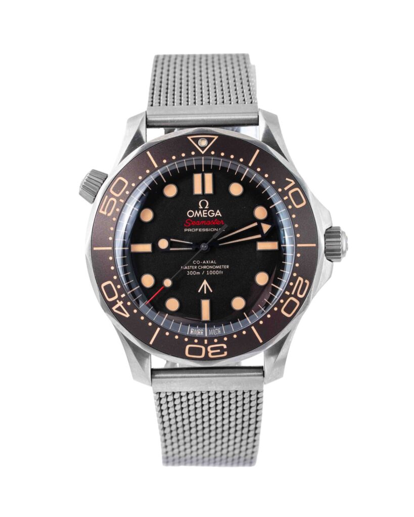brand: Omega Reference: 210.90.42.20.01.001 Model: Seamaster Diver 300M case MATERIAL: Titanium strap: Bracelet case Size (MM): 42mm Dial colour: Brown Bezel: Titanium Year: 02/2023 Condition: Excellent Box papers : Paperwork/box