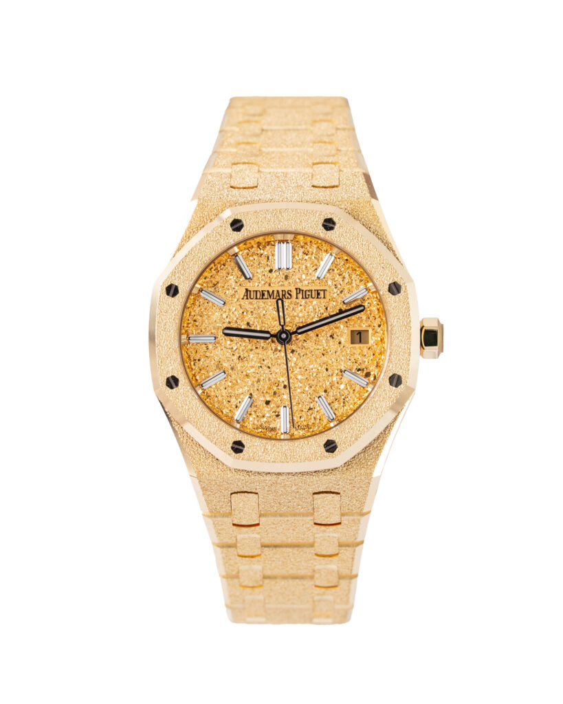 brand: Audemars Piguet Reference: 77450BA.GG.1361BA.01 Model: Royal Oak Selfwinding case MATERIAL: Yellow Gold strap: Bracelet case Size (MM): 34mm Dial colour: Gold Bezel: Yellow Gold Year: 03/2026 Condition: Unworn Box papers : Paperwork/box