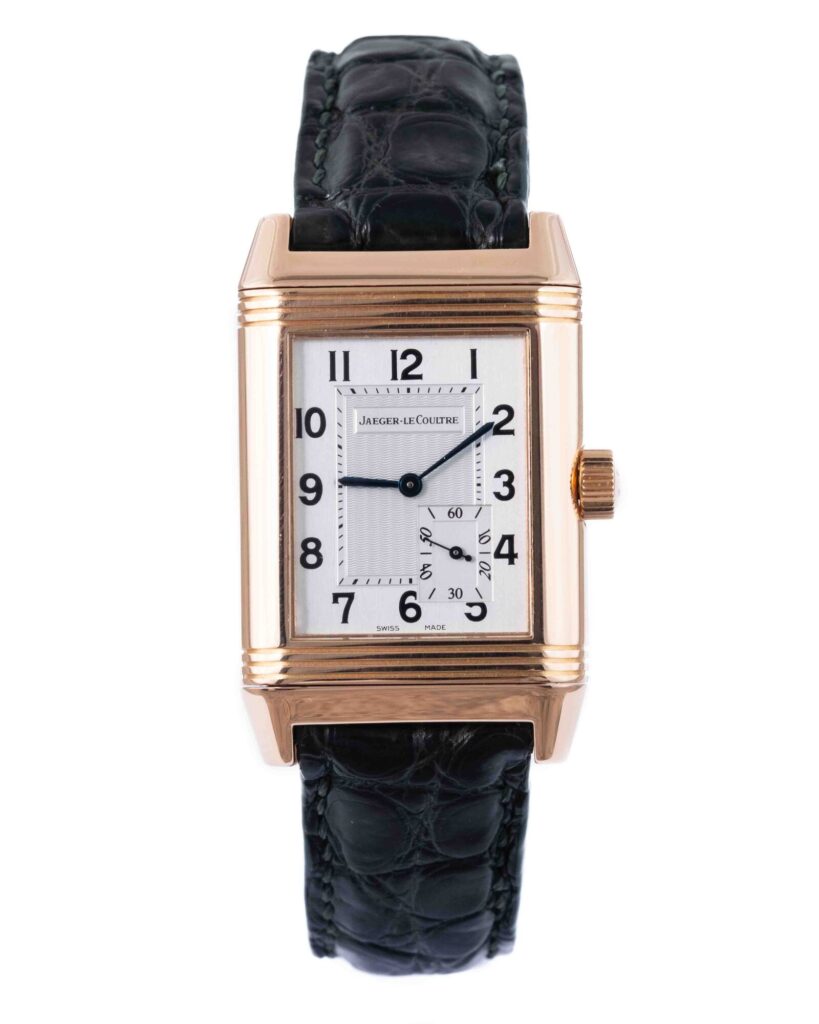 brand: Jaeger-Lecoultre Reference: Q3012420 Model: Grande Reverso case MATERIAL: Rose Gold strap: Leather case Size (MM): 46.5mm Dial colour: White Bezel: Rose Gold Condition: Excellent Box papers : Box