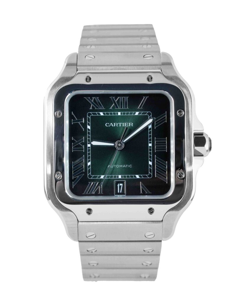 brand: Cartier Reference: WSSA0062 Model: Santos case MATERIAL: Steel strap: Bracelet case Size (MM): 40mm Dial colour: Green Bezel: Steel Year: 03/2024 Condition: Excellent Box papers : Paperwork/box