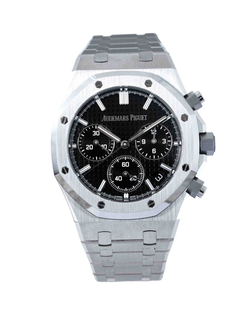 brand: Audemars Piguet Reference: 26240ST.OO.1320ST.02 Model: Royal Oak case MATERIAL: Steel strap: Bracelet case Size (MM): 41mm Dial colour: Black Bezel: Steel Condition: Unworn Box papers : Paperwork/box