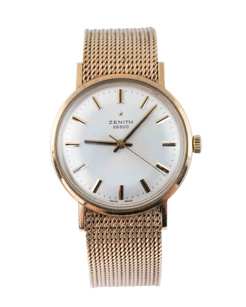 brand: Zenith Reference: 28800 Model: Stellina case MATERIAL: Yellow Gold strap: Bracelet case Size (MM): 33mm Dial colour: Silver Bezel: Yellow Gold Condition: Good Box papers : Watch Only