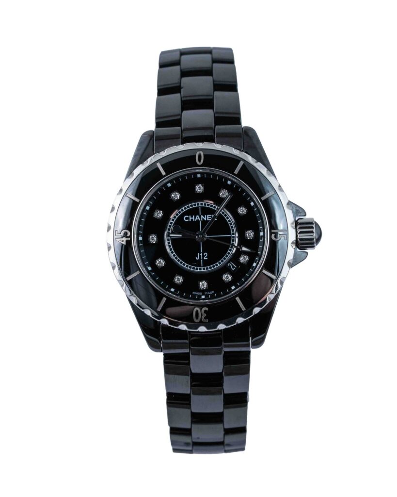 brand: Chanel Reference: H1625 Model: J12 case MATERIAL: Ceramic strap: Ceramic case Size (MM): 33mm Dial colour: Black Bezel: Ceramic Year: 10/2010 Condition: Excellent Box papers : Paperwork/box
