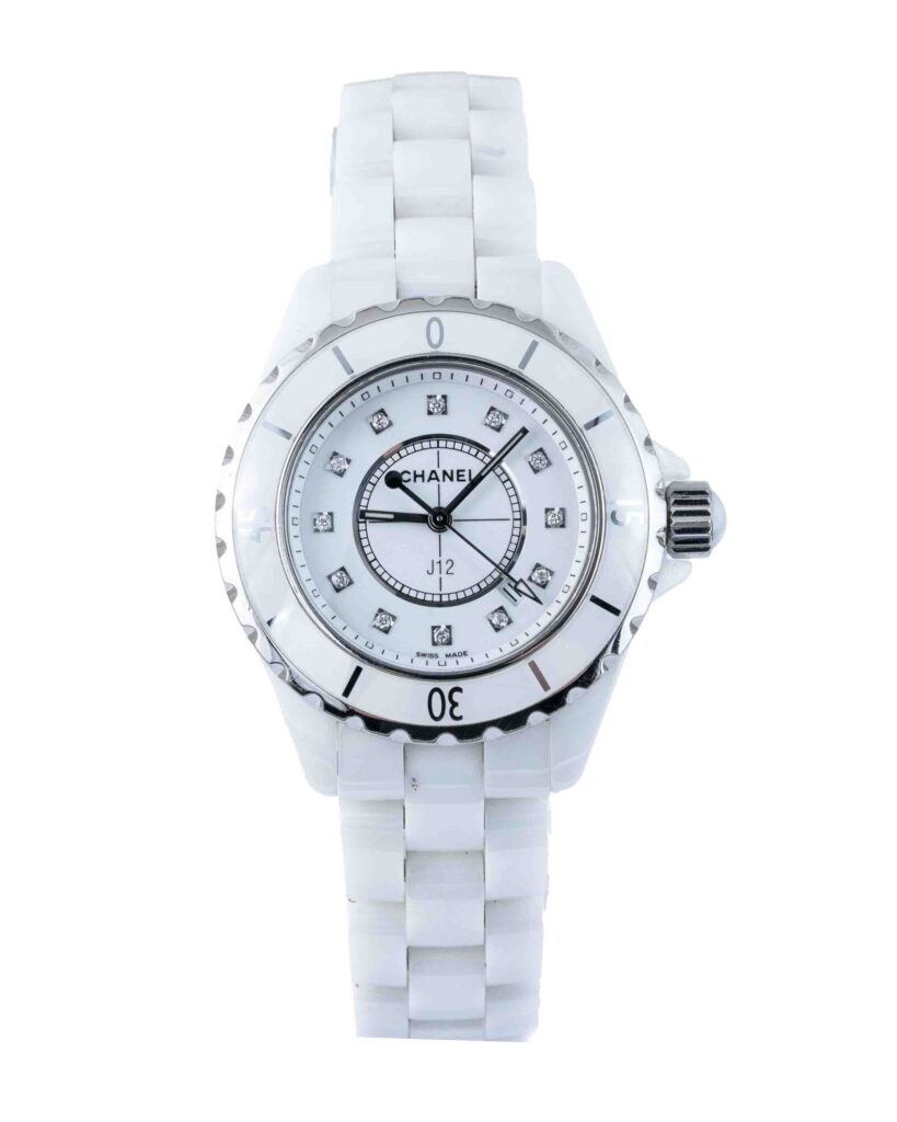 brand: Chanel Reference: H1628 Model: J12 case MATERIAL: Ceramic strap: Bracelet case Size (MM): 33mm Dial colour: White Bezel: Ceramic Year: 10/2011 Condition: Excellent Box papers : Paperwork/box