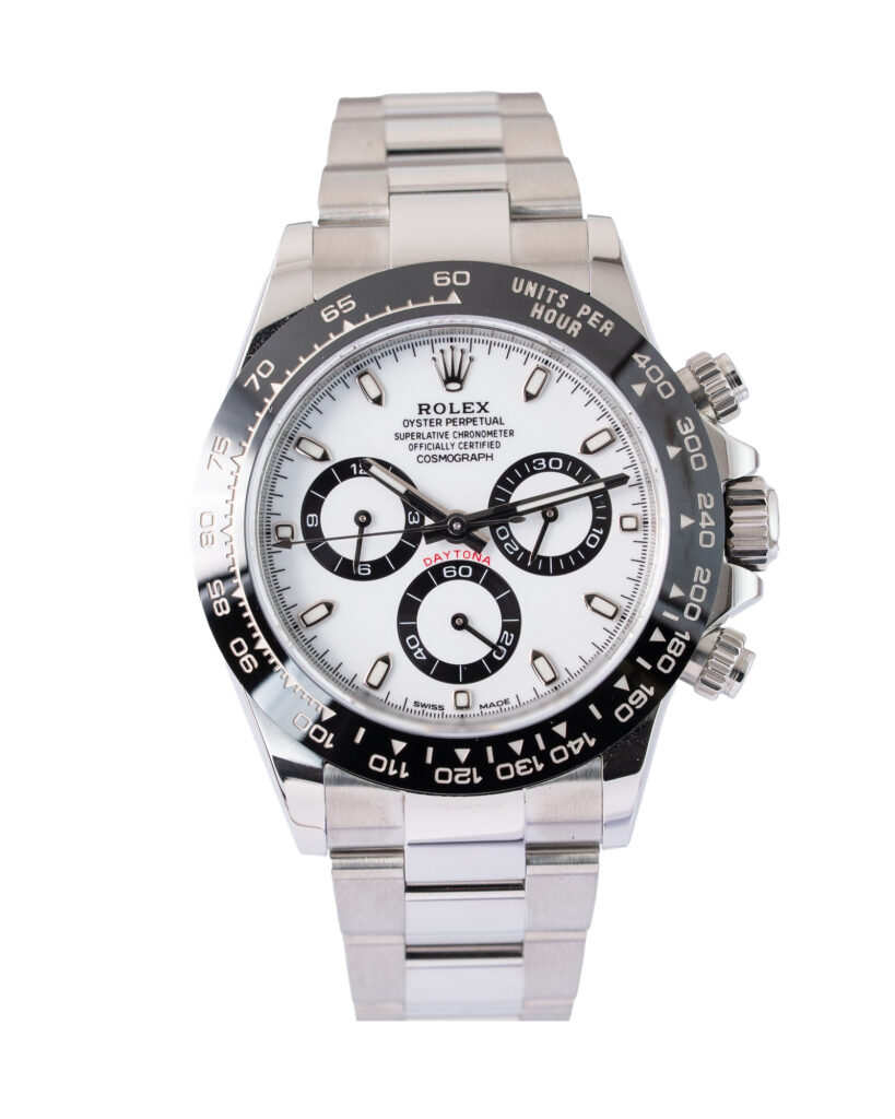 brand: Rolex Reference: 116500LN Model: Daytona case MATERIAL: Steel strap: Bracelet case Size (MM): 40mm Dial colour: White Bezel: Ceramic Year: 12/2022 Condition: Excellent Box papers : Paperwork/box