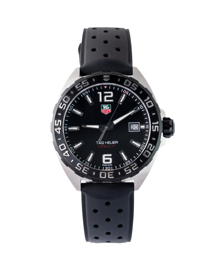 brand: Tag Heuer Reference: WAZ1110 Model: Formula 1 case MATERIAL: Steel strap: Rubber case Size (MM): 41mm Dial colour: Black Bezel: Plastic Condition: Excellent Box papers : Box