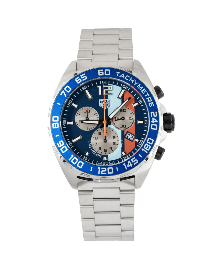 brand: Tag Heuer Reference: CAZ101N Model: Formula 1 Quartz case MATERIAL: Steel strap: Bracelet case Size (MM): 43mm Dial colour: Blue Bezel: Steel Year: 06/2021 Condition: Excellent Box papers : Paperwork/box