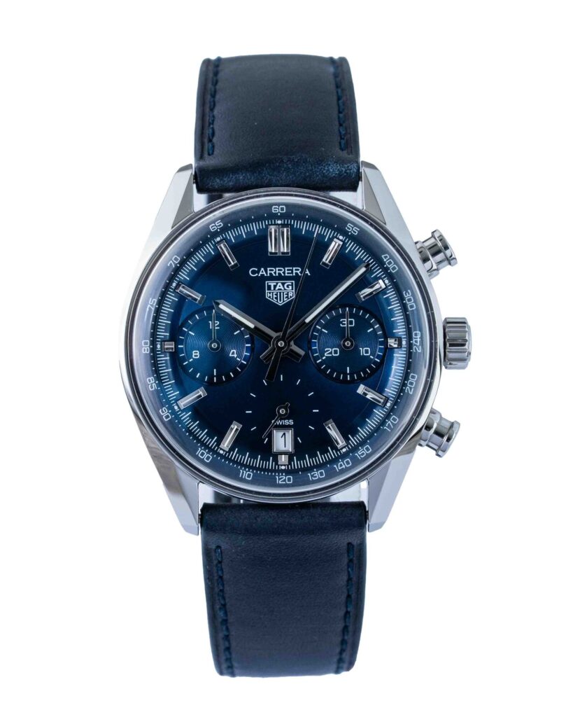 brand: Tag Heuer Reference: CBS2212-0 Model: Carrera case MATERIAL: Steel strap: Leather case Size (MM): 40mm Dial colour: Blue Bezel: Steel Year: 05/2024 Condition: Excellent Box papers : Paperwork/box