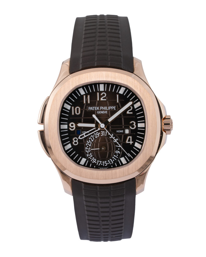 brand: Patek Philippe Reference: 5164R-001 Model: Aquanaut case MATERIAL: Rose Gold strap: Rubber case Size (MM): 40.8mm Dial colour: Brown Bezel: Rose Gold Condition: Excellent Box papers : Box