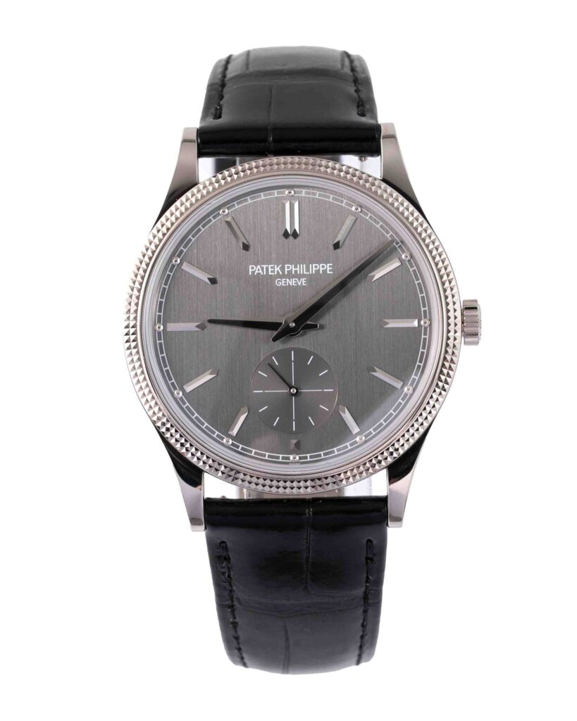 brand: Patek Philippe Reference: 6119G-001 Model: Calatrava case MATERIAL: White Gold strap: Leather case Size (MM): 39mm Dial colour: Grey Bezel: White Gold Year: 12/2024 Condition: Excellent Box papers : Paperwork/box