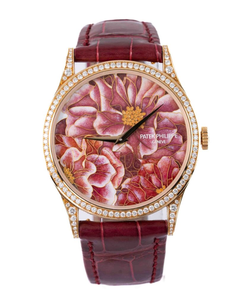 brand: Patek Philippe Reference: 5077/100R-042 Model: Calatrava case MATERIAL: Rose Gold strap: Leather case Size (MM): 37mm Dial colour: Pink Bezel: Rose Gold Year: 09/2021 Condition: Excellent Box papers : Paperwork/box