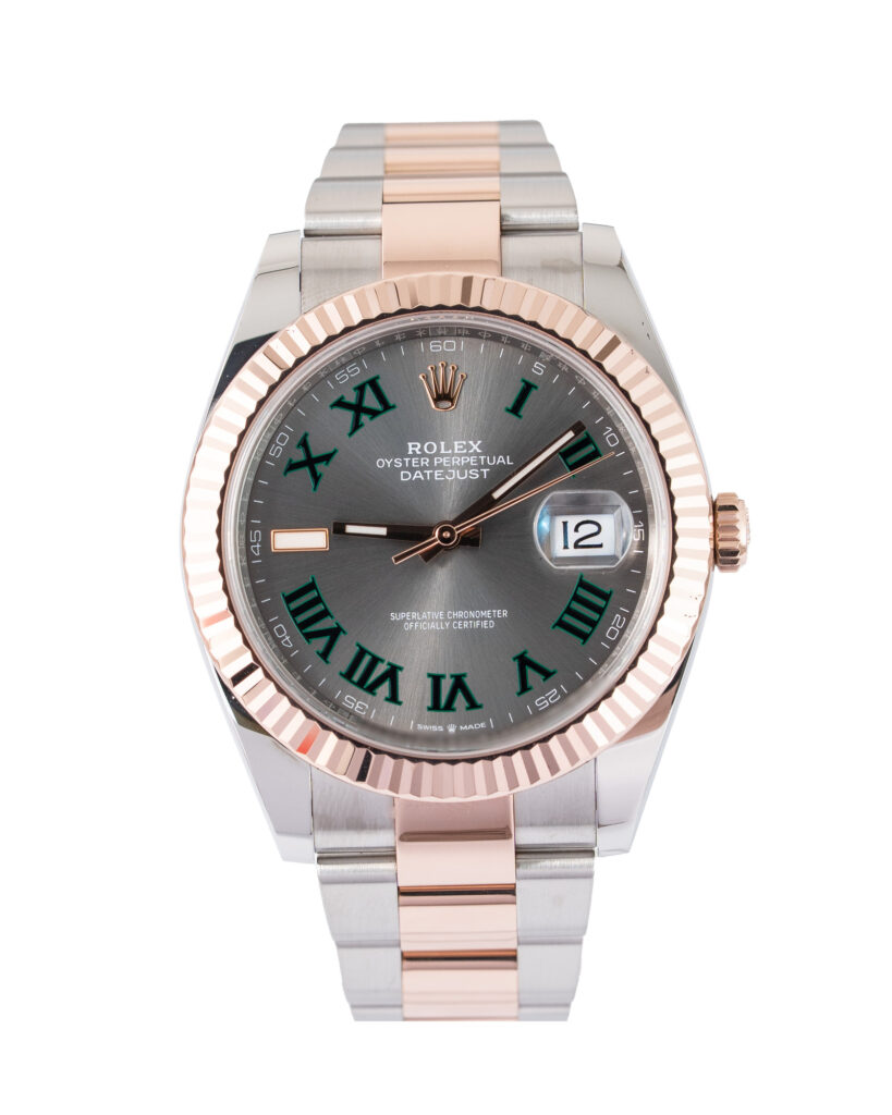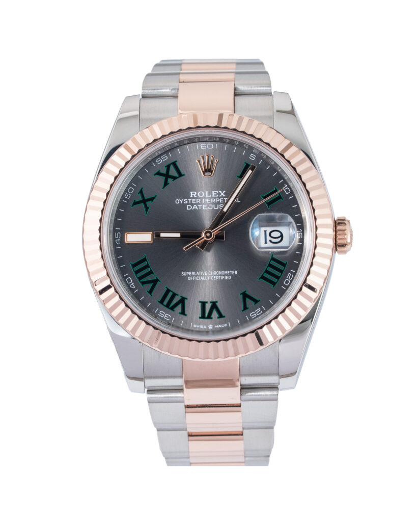 brand: Rolex Reference: 126331 Model: Datejust case MATERIAL: Steel & Rose Gold strap: Bracelet case Size (MM): 41mm Dial colour: Grey Bezel: Rose Gold Year: 10/2021 Condition: Excellent Box papers : Paperwork/box