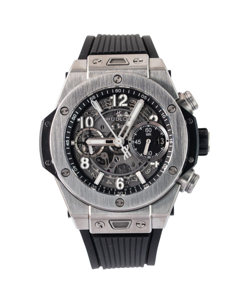 brand: Hublot Reference: 441.NX.1171.RX Model: Big Bang Unico case MATERIAL: Titanium strap: Rubber case Size (MM): 42mm Dial colour: Transparent Bezel: Titanium Year: 03/2023 Condition: Excellent Box papers : Paperwork