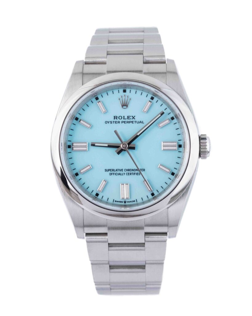 brand: Rolex Reference: 126000 Model: Oyster Perpetual case MATERIAL: Steel strap: Bracelet case Size (MM): 36mm Dial colour: Blue Bezel: Steel Year: 07/2021 Condition: Excellent Box papers : Paperwork/box