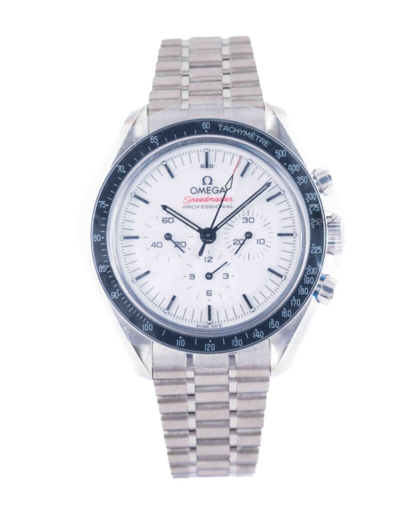 brand: Omega Reference: 310.30.42.50.04.001 Model: Speedmaster Moonwatch case MATERIAL: Steel strap: Bracelet case Size (MM): 42mm Dial colour: White Bezel: Steel Year: 07/2024 Condition: Unworn Box papers : Paperwork/box