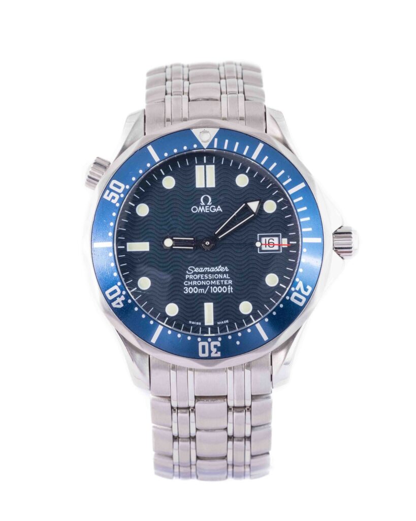 brand: Omega Reference: 2561.80.00 Model: Seamaster case MATERIAL: Steel strap: Bracelet Dial colour: Blue Bezel: Steel Condition: Excellent Box papers : Service Paper/box