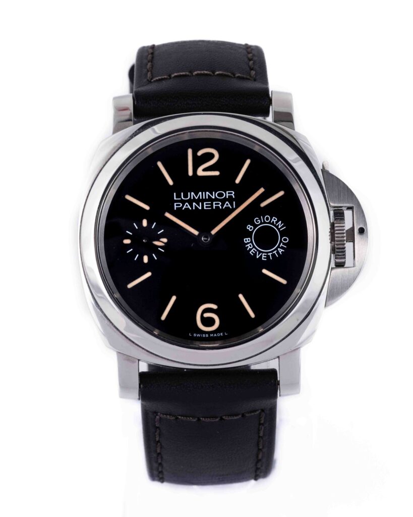 brand: Panerai Reference: PAM00590 Model: Luminor Marina 8 Days case MATERIAL: Steel strap: Leather case Size (MM): 44mm Dial colour: Black Bezel: Steel Year: 10/2017 Condition: Excellent Box papers : Paperwork/box